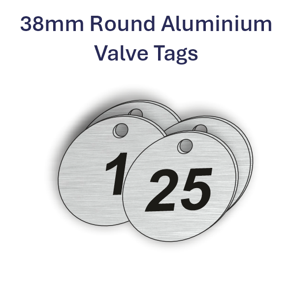 38mm Anodised Aluminum Valve Tags packs of 25 Number sequenced