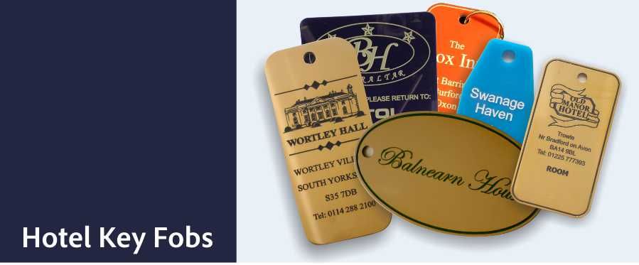 Introduce your guests to the luxury of your hotel or guesthouse with our high-quality key fobs from Identitag Ltd. We offer key fobs made from Traffolite, Brass, and Perspex, all of which are designed to be both durable and stylish.